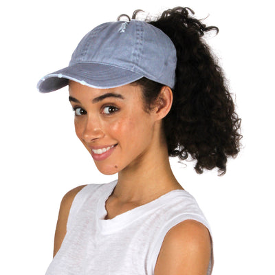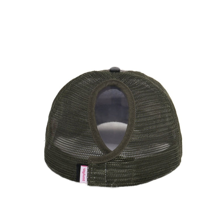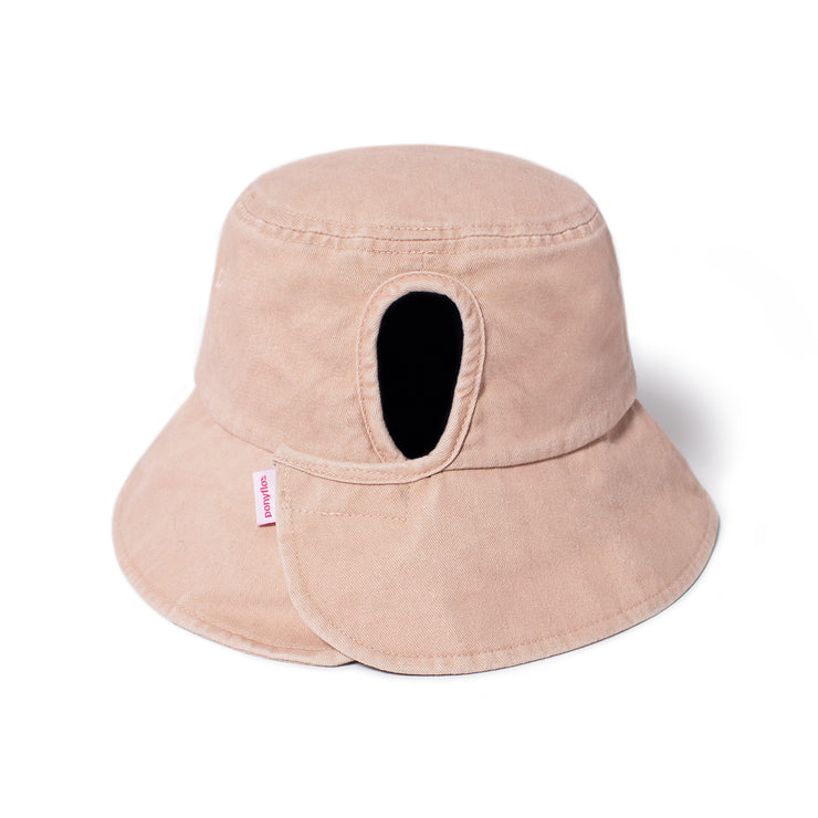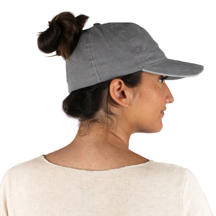 For girls that are always on the go, this Ponyflo® kids hat is the perfect accessory that’s both cute and practical. Featuring a pigment-washed fabric. Ponyflo® hats are specially designed by a woman for women. This patented back design completely opens in the back to support high ponytails and buns.
